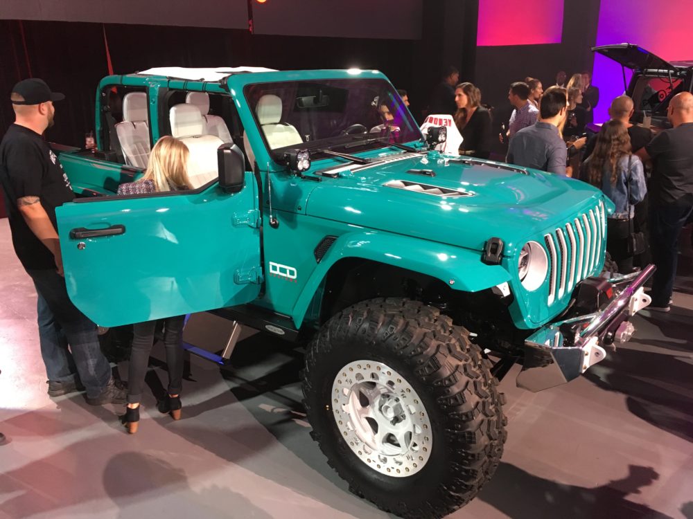 Sure, the trio of Jeep Wranglers customized by the industry’s top talent had no problem garnering lots of oohs and aahs right out of the gate. And that was thanks to the color choices for the Jeeps’ exteriors, which wowed the crowd even before the rest of the evening’s surprises were revealed. Each of the Jeep Wranglers has a distinctly-telling hue that expertly exemplifies the overall personality of the mod project itself as well as that of its new celebrity owner.