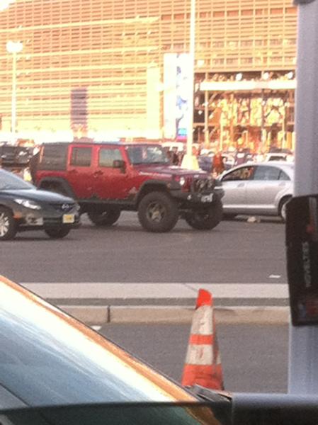 Spotted tan unlimited today in NYC with black rims and matching hard top and pretty big tires in a parking spot. I was at the boat show so maybe you were there as well.