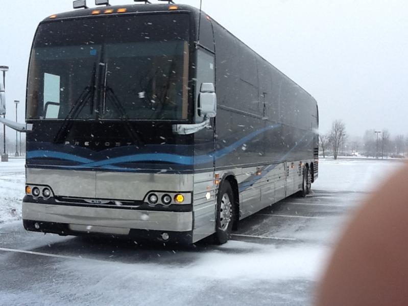 I love the bus! Were you driving a Prevost? The news organization I work for has a Prevost that we converted into a satellite truck. It's an amazing vehicle.