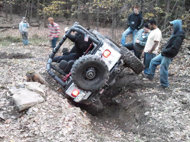 The white YJ was able to hit 54deg of tilt in that hole but the dirt was holding him up and keeping the jeep from rolling. Usually about 40deg and most rigs will roll. He later went through this same section about 2ft to the right and ended up rolling due to not being held up by the dirt embankment. Zero damage though as the dirt is very soft and there really wasn't very far to fall. You can see a vid of it under user mikesadass on ytube.