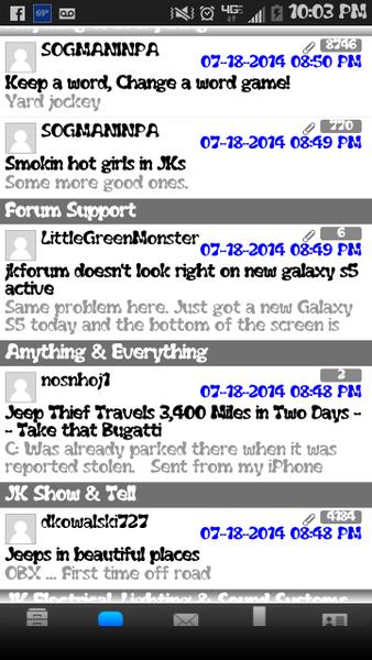 Thank you! I'll pass this to IB and also find out if JK Forum is the only forum with display issues on the Galaxy 5. If you are not using, please try the Android mobile app linked below.