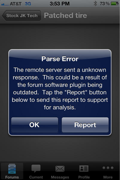 I'm getting a parse error notification almost time I click on a thread. If I click on it several times it might open the thread. I'm using an iPhone4 with iOS 5.1.