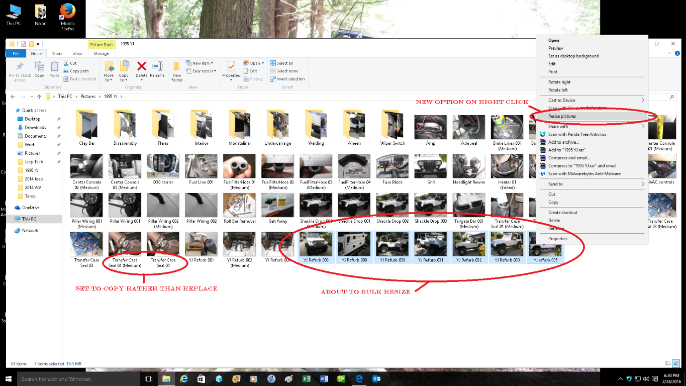 I use the MS free image resizer before I post to reduce them down in size. Once installed, you can resize pictures in bulk using the same method you use to copy images, namely highlighting the file names and then right clicking and select the new option resize. It came out for win xp and I have carried it through all my windows iterations, including my current release win 10 even though it is not advertised as working in any other releases but XP.