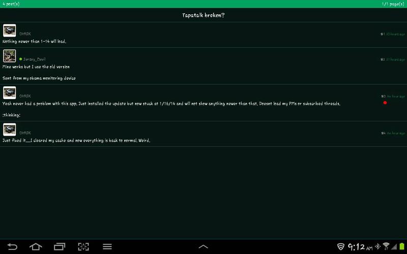 Yeah never had a problem with this app. Just installed the update but now stuck at 1/16/14 and will not show anything newer than that. Doesnt load my PMs or subscribed threads.