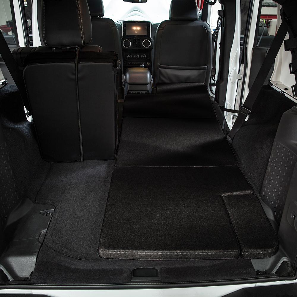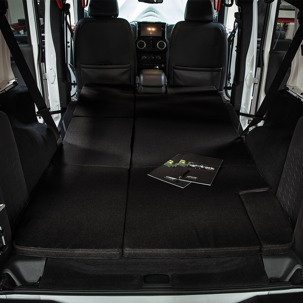 I work at this online store Xprite USA, they have this sleeping pad that fits perfectly in my JKU. I love it so far, it is foldable and can attach the backseat.