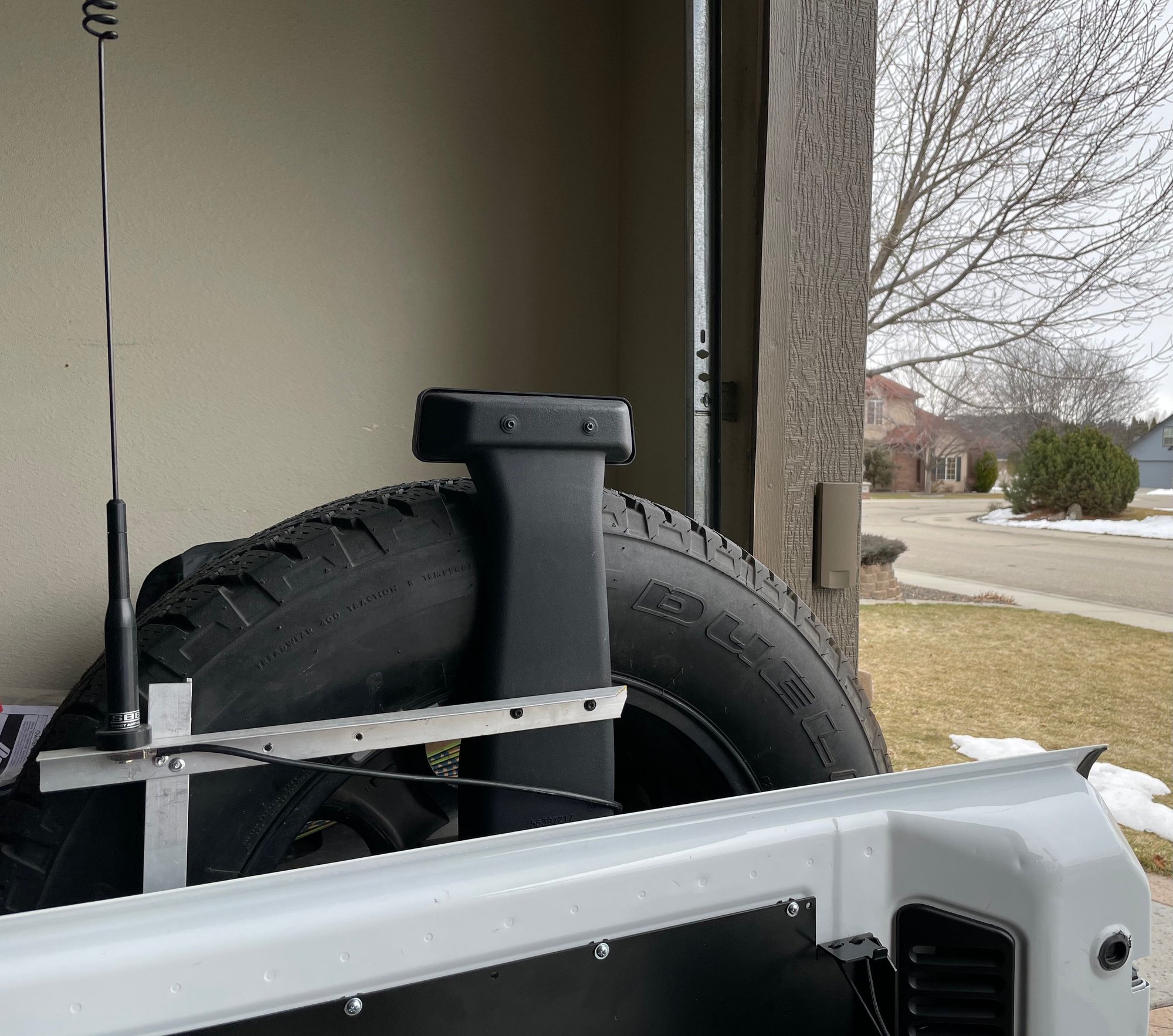 I use the rugged ridge NMO mount on the front cowl during the winter when the HT is on it. During summer I run a NMO on my roll bar as we run a bikini top all summer. Much better than the spare tire mounts. I run the larsen NMO 2/40 on both mounts.