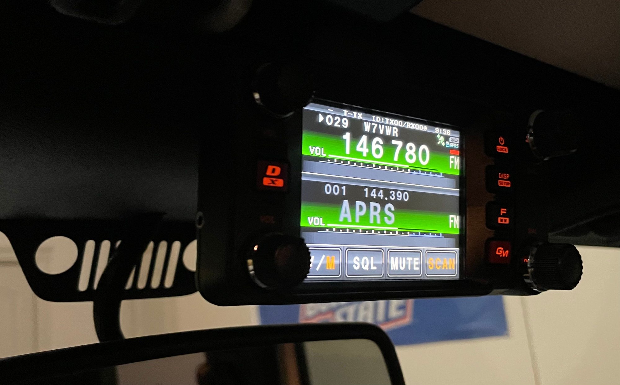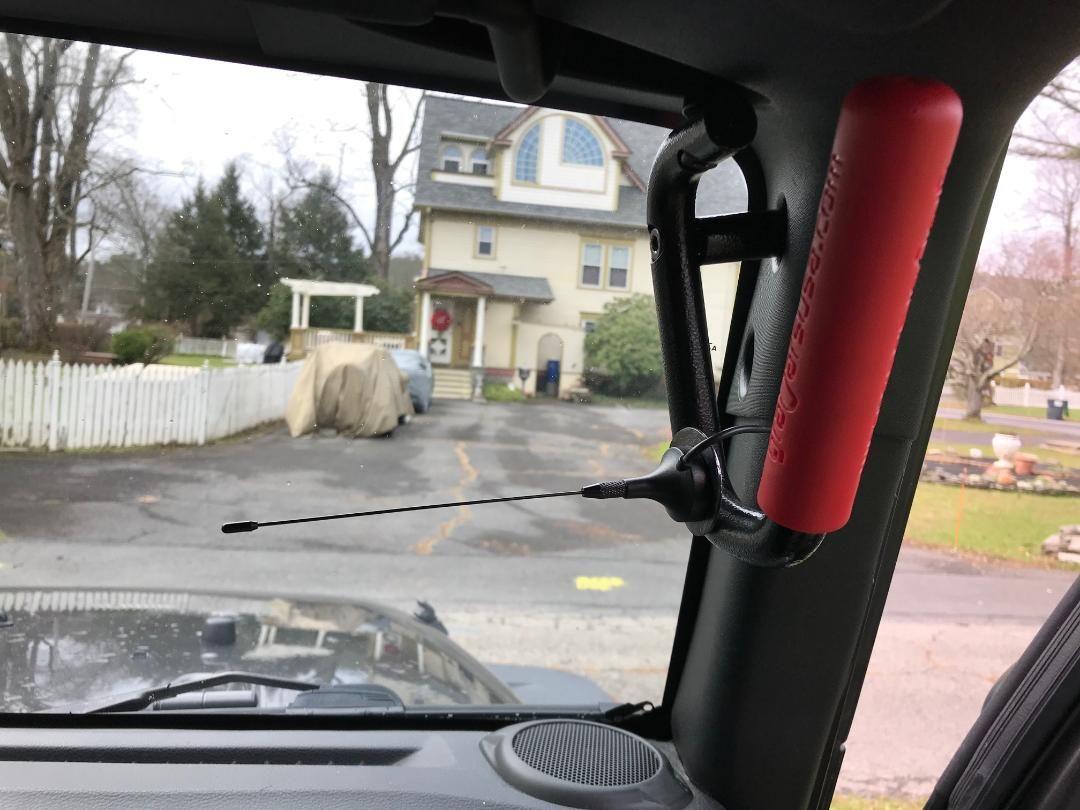 I have installed my Yaesu FTM-400 in the JK. I put the face above the mirror. I designed and built bracket bracket that goes under the plastic and screws to the frame of the windshield. The body is below the seat in the microphone next to the driver. I plan to install a speaker above the driver on the rollbar. Attach the antenna to the rear brake light mount. It shook quite a bit so I had to do a vertical support as well. Anyone else have ideas on the antenna mount?