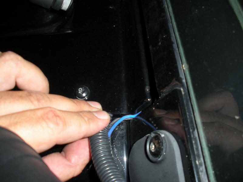 The plastic under my fingers is a plastice wire loom. One thing I wish I had done was to use heat shrink tubing on the exposed wires. The plastic looks fine but can blow off in high winds or car washes.