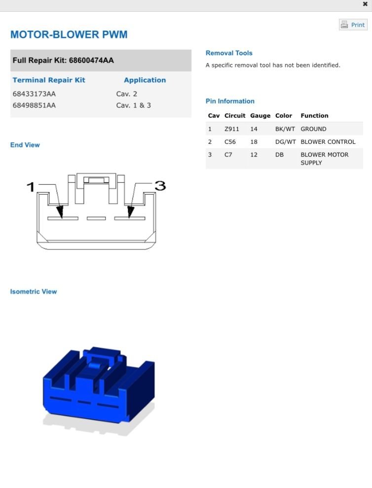 As it seems common in many of these posts here, my blower motor was going out in my 2016 JKU Sport S and caused the 3-wire connector to burn. Finding / replacing the motor is easy, but I can't seem to find the 3-wire connector for the JK. Tons of posts about the TJ, but none for JK. Any help would be greatly appreciated.