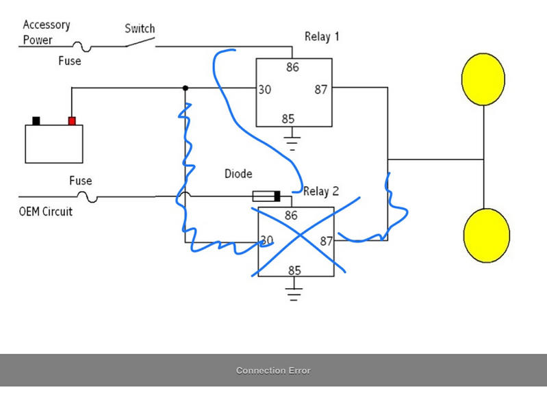It sounds like your professional wiring guy. I'd really like to learn from you if there's a reason why a two relay setup would be better. I've been wiring for a long time but I've never seen a setup like yours for one set of lights. I'm not trying to be condescending, I'd honestly like to learn for future use. Thanks.