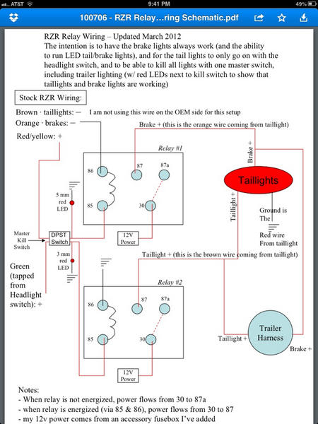 Here's a two relay setup I designed for my Polaris rzr that would allow me to run in blackout mode. The rzr uses a negative switched ground setup, so using two relays was essential. As I typically pull a trailer full of friends, I wanted the trailer taillights to go out too when I flipped the switch. It all worked perfectly, and I could add led lighting to the rzr. This isn't my first rodeo when it comes to wiring relays and lights.