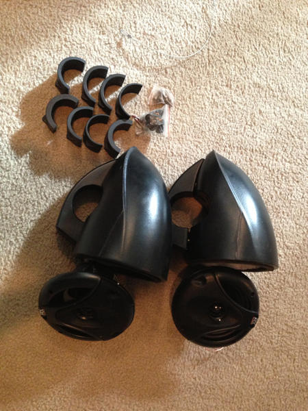 just got my MTX marine tower speakers in. came with different adapters for various bar size mounts and looks very good. also came with polyfill sound padding inside the pods. pretty impressed for the price so far. going to install them tonight on the rear bar and will post pics