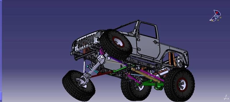 A huge thanks to an engineer/friend/Jeep god, for creating a working CAD model of the build. Talk about saving me some serious time!!! This guys talents are insane. Enjoy the few sneak peeks. And yes, that is a 40" tire 50" off the ground with all others on the ground. Ignore the body, it would be a bad use of time to comp cut a picture.