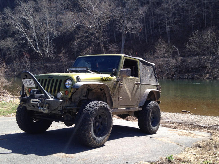 I went down to visit my buddy, KarmynsBeep (KB), in KY on Thursday. He actually didn't know I was coming as we had originally planned but his wife insisted we not tell him. So after work Thursday morning I hopped in the Jeep and headed west. I was slightly nervous about the gears because Chaos hasn't changed the fluid. (I changed it at 420 miles on Wednesday for the 550 mile journey). When I got into West Virginia, I was so thankful I regeared. If I still had 3.21's I would've suck started my handgun or turned around. If you've never been before, WV has some insane mountains and for the first time ever in my Jeep, I was passing people while climbing in 6th gear.