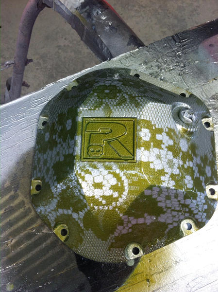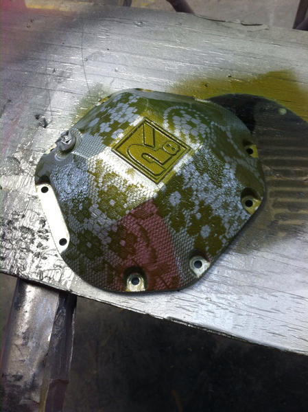 Pictures: I'm super happy with how it turned out. I love the colors and think it'll look good on the rear where it should get abused a tad bit less than the front. Big thanks to my buddy for the hard work and great idea! I've got somebody's panty pattern on my diff now! ... Or something like that. Lol