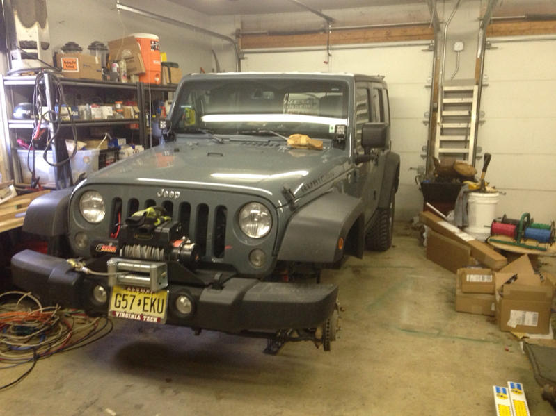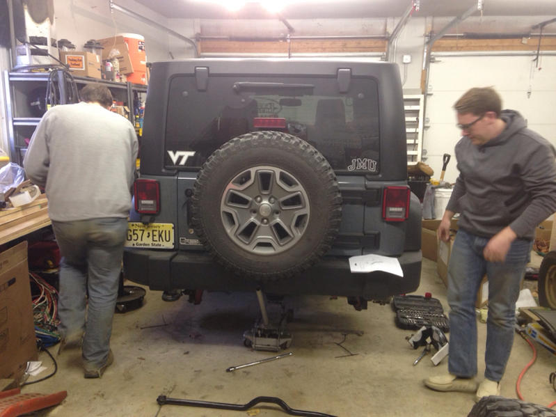 Yesterday was a LONG day. Had a wrenching party at my place that started at 0830 and didn't end until 2300. We put a 2.5" AEV lift on my buddies anvil rubi (which took much longer than I thought because of some bad designs by AEV) but we got her done.