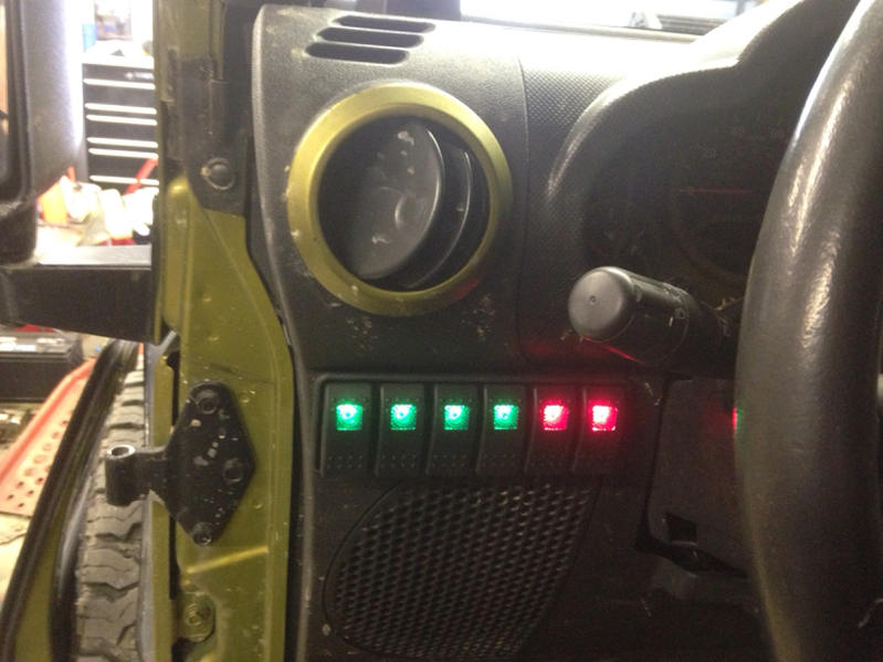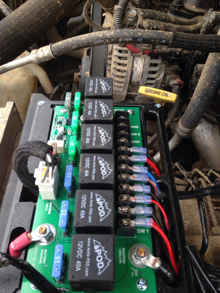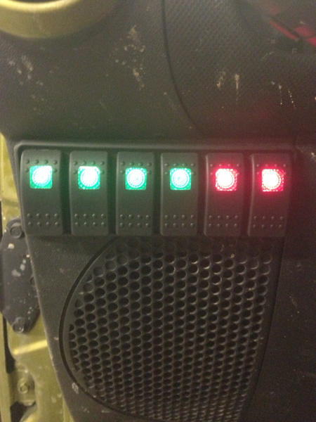 Also, I was able to turn my hideous wiring job into something that's actually pleasant to look at with an spod. I couldn't use the standard spod location because of my tuffy overhead console and nobody seems to have posted an alternative location, but I found one. I'm damn happy with how this turned out. My old set up had 3 switches in 2 different locations, the cb was a PITA to turn on and I had no room for switches to my future lockers. Now it's organized, easy to turn everything on and off at once and the red switches will be my lockers. JR from