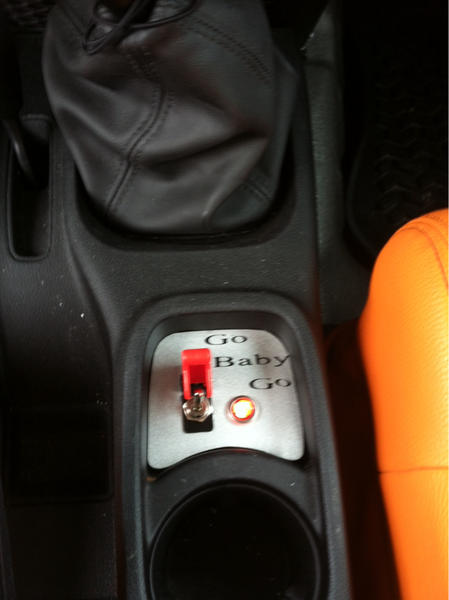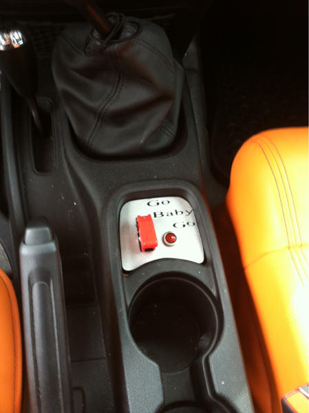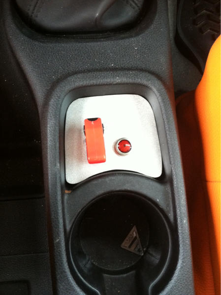I wanted a nice looking install so I removed the factory change holder and built a panel out of a scrap piece of aluminum I had laying around, drilled a couple of holes, painted it with a color matched rattle can, then installed and wired my switch and indicator light. Because I'm a muscle car guy at heart I couldn't help and ad a little tribute to my favorite movie