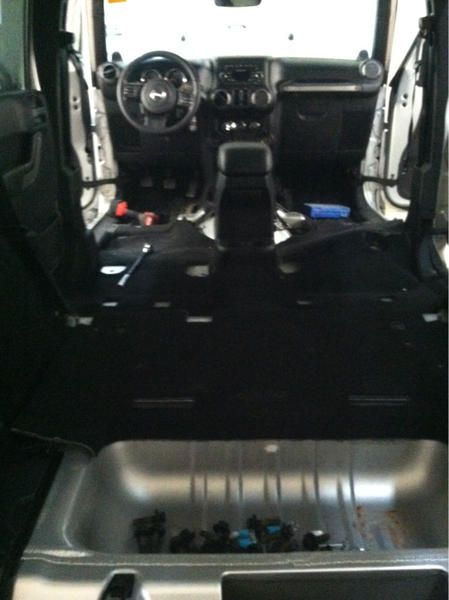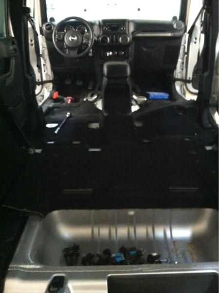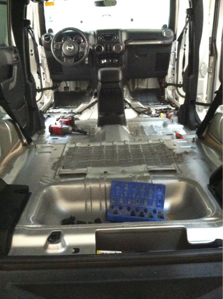 Then after working a 12 hour shift I headed to the body shop and proceeded to rip my jeep into a thousand pieces to put a raptor liner in it this weekend!!! Got it all dismantled today going to attack the sound deadener tomorrow!!!!