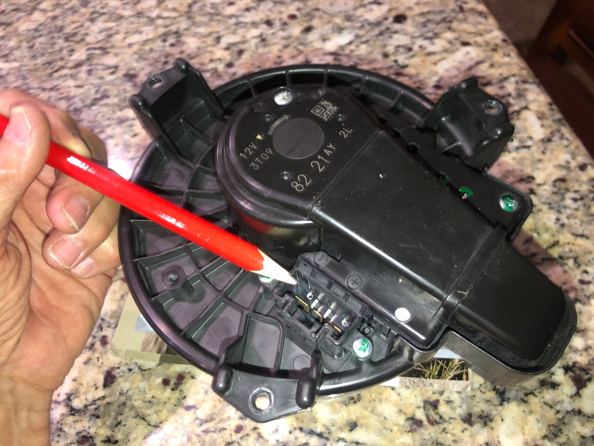 Old and new control panels Red pencil points to 3 prong plug of the resister attached to blower motor & fan housing.
