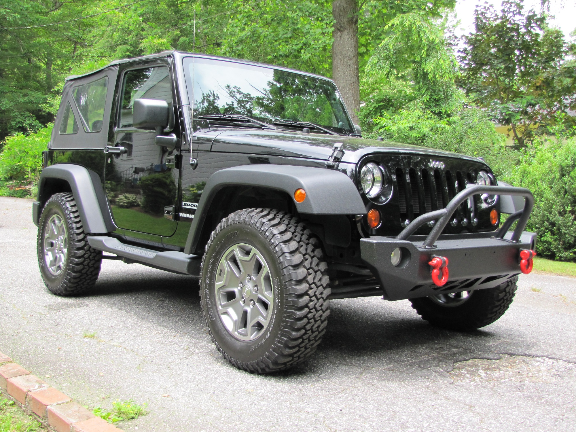 I thought I'd show off the progress I have made on my 2012 Wrangler. It was bone stock when I purchased it back in early November with the except of the Sahara wheels. Condition was really good and it seemed like new even with mileage at 60,000. This week I found a set of Rubicon take offs just 30 minutes down the road. I am not a big fan of the Sahara wheels as they seem a bit blingy to me. I was considering just keeping them and added some bigger mud terrains but thought I would check out Craigslist and see if there were any take offs. The BFG Mud Terrains are brand new so I felt $1000 for the entire set with wheels also, and the high quality 1.5" spacers that it was a solid deal. The new Smittybilt bumper also arrived this week. Earlier in the winter I added the axle back exhaust from Lagato and the guards on the headlights and tail lights. I am really happy with the axle back exhaust. It sounds great and the duels out the back with stainless tips look great. I am really digging the new overall look. Next up will be a new rear bumper and lights for the bar on front bumper. That will be it for a while to keep the wife from bitching too much about how much I am spending on the Jeep.