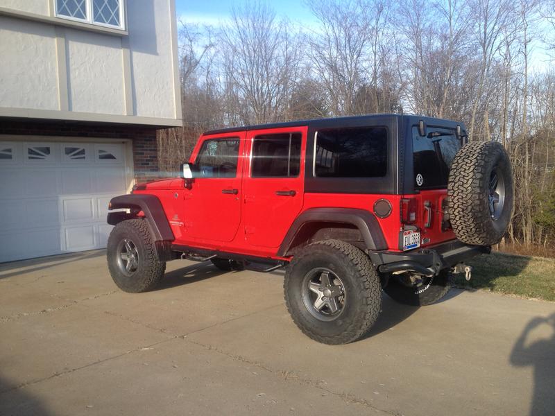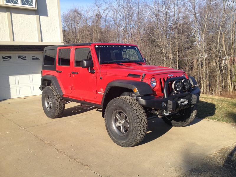 I just made the bump up to 37's from 35's. I wanted a small 37" lighter weight all terrain tire so I went with the BFG KO2. I thought I'd post some pics for reference since there isn't a lot out there yet for the 37's. I was running a 2.5" lift with small 35's (BFG KO) and just recently installed an AEV 4.5" so I wanted something that would fill the fenders a little more without losing a lot of power. The KO2's are exactly what I was looking for size wise, but would probably be disappointing if you wanted a true 37. They run small like most BFG's