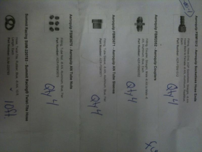 I can get you guys the exact part#s i used. The actuall install is mostly the same as the other write ups. Only thing difference is i cut off my factory crimp fittings (which is the main cause of the seep).