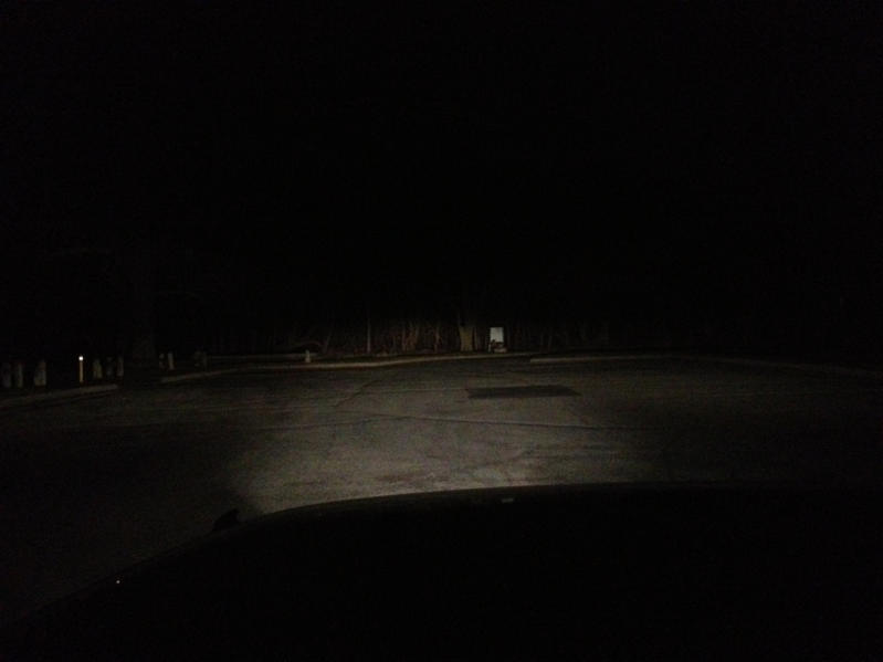 The night shot on the left is just the LED, the shot on the right is my headlight and foglight, no LED. Crazy, and that picture doesn't do it justice.
