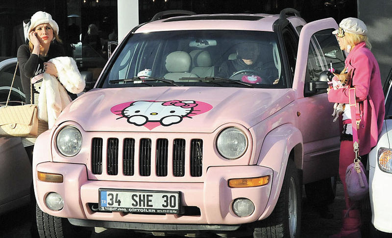 I think it's somewhat common for Asianese girls to dress their cars up with hello kitty stuff. I know In Japan it's not uncommon for kids to elaborately decorate their cars with a cartoon character theme. I'd rather see this than dubs and lo-pro tires, at least this is still offload capable.