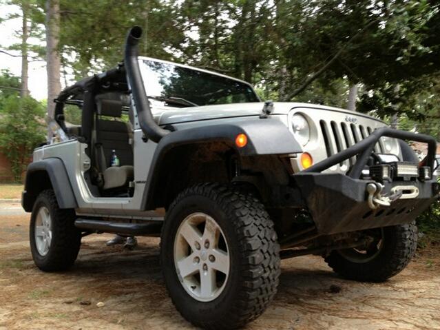 This is my 110K mile JKX. Custom high lift mount, custom pappa-san folding chair mounts, hard mounted 12" sub in a waterproof off-shore bag, Crash-built snorkel, sway-bar delete, carpet delete, bank-note delete, and the only thing done at a shop was the lift kit and amp wiring that I regret so dearly... I load it up and beat the piss out of it with its used Rubi take-off 32's and don't worry about sidewalls.