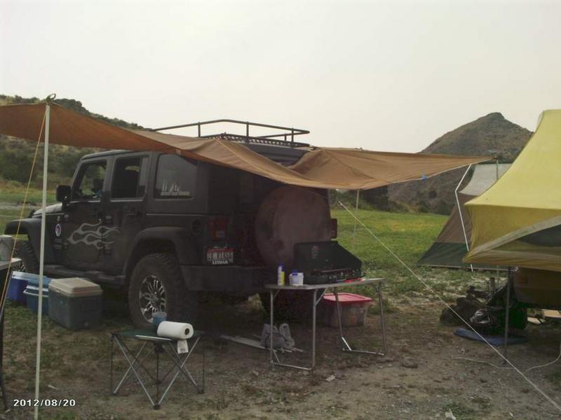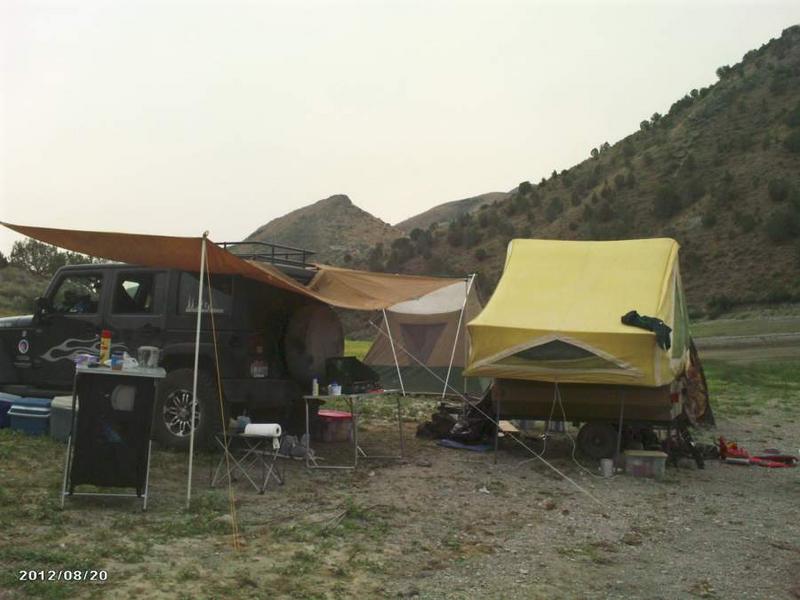 I've made few mods to my Jeep (see signature below) as it's my DD and I'm retired, so have to keep it cheap. The underfloor storage mod with a Coleman SUV air mattress makes a great bed for me inside the Jeep. My brother, who has a Liberty with a lift kit, and I took our grandaughters camping for 2 days at Sublett Reservoir in SE Idaho last August. The kids slept in his old tent trailer and had a ball playing in the water. My grandkids range from 3 years old to 7 and his is an 8 year old. I'm still working on the shade made from an old pup tent. The trails getting there weren't too rough, so pulling the trailer with the small wheels wasn't a problem. See the pics below.