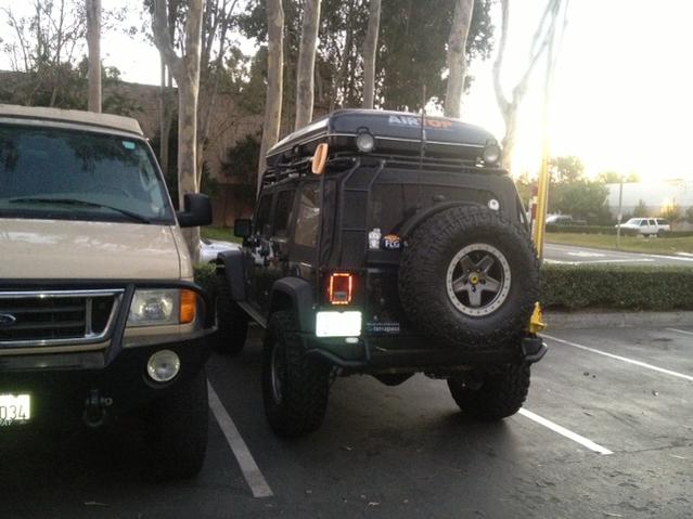 I still don't have my rig out of the shop as I'm waiting, weeks and weeks now on a Rubicrawler, but here are some fuzzy cell phone picts of it from my shop (American Overland Expedition), who does outstanding work. After I get it back, I'll be running these calculations and I'll share my rollover angles here if anyone's interested. I already have two trail duty inclinometers so time to put them to good use.