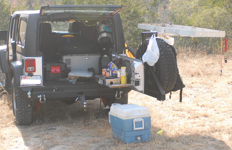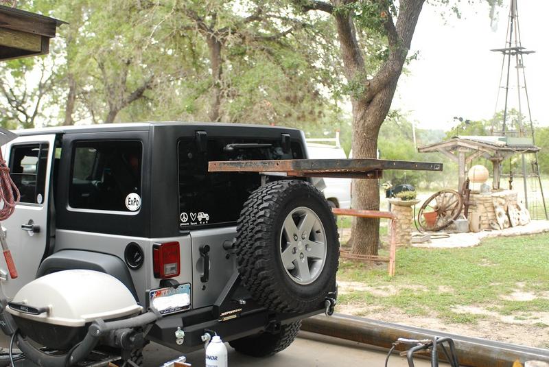 I carry stuff occasionally on a rear carrier. The first trip out in the jeep with the carrier on the back, I was SOL when I had to get into the back to fill the cooler with ice. Had to unload my canopies etc to get into the back. The next weekend I broke out the welder and some tubing and got the carrier up and out of the way. I figure if the swingout was designed to handle (2)5gal cans of gas and a 37" tire, a 100lbs of gear on a carrier should be fine. I think the most I have had was about 50. Does kill the rear view mirror, but that's what a rear camera is for.