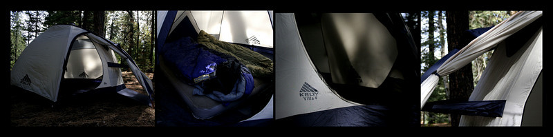 Packed in the black duffle on the deck is my entire sleeping setup: a Kelty 4 person Tent, 2 sleeping bags (both highly compressible down bags), and 1 queen air mattress