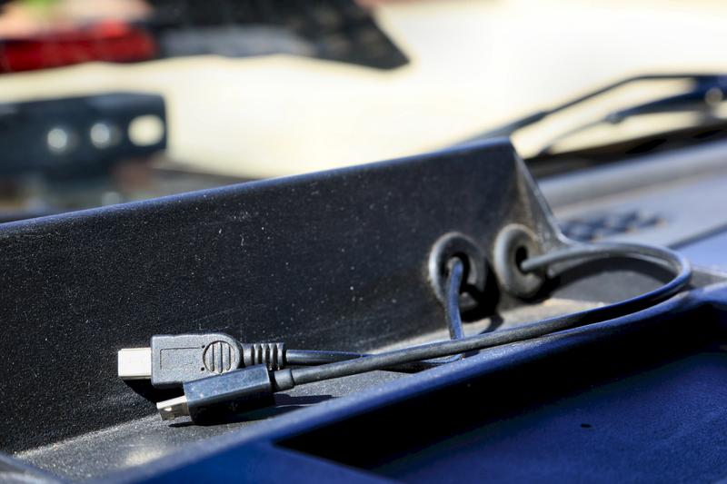 You will also notice in the above image a mini USB connector. That connector is hard-wired to the cigarette lighter wiring behind the dash (ignition switched, IOW) with a USB power device designed for motorcycles. I use it to charge the GoPro that's not mounted to the windshield (more on that momentarily). This is the device: amazon.com/gp/product/B002ALTKBM/ref=wms_ohs_product?ie=UTF8&psc=1