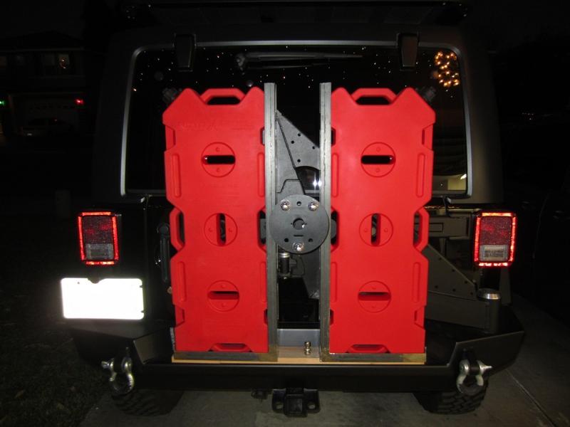 I have been working on a custom Rotopax gas can carrier, using my existing tire carrier swing arm from my Expedition One rear bumper.