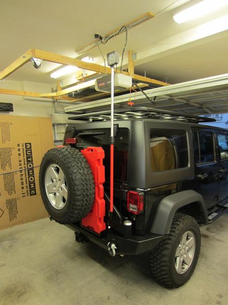 With spare tire installed and removable flood light pole in extended position: