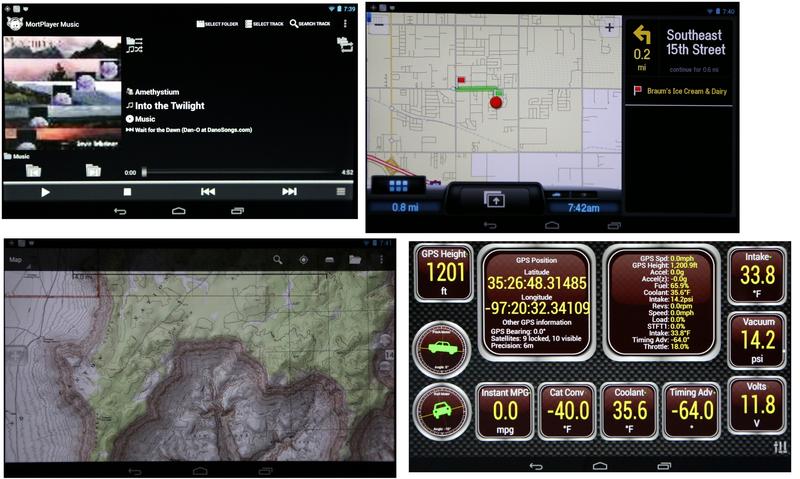 Play music, highway navigation, off-highway navigation and topo mapping, and monitoring the CAN bus ...