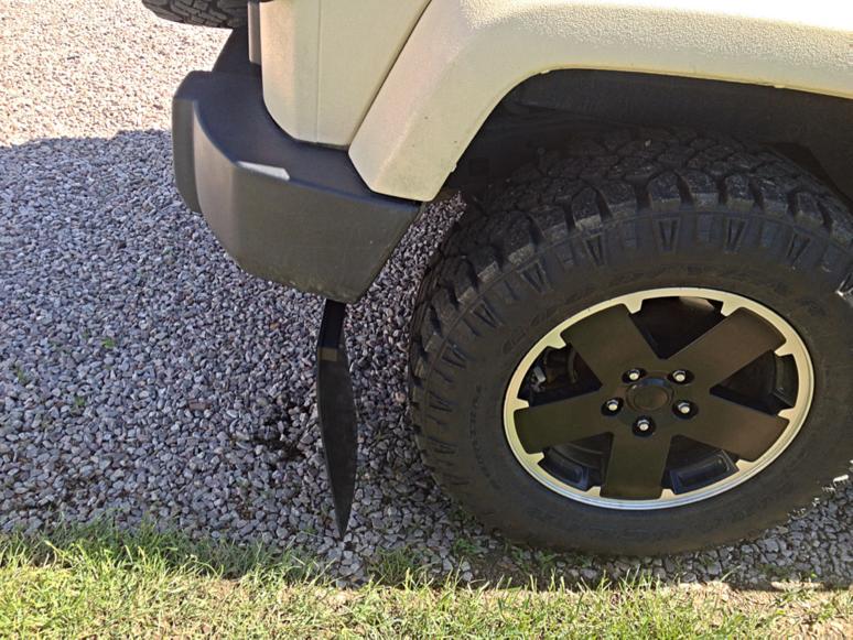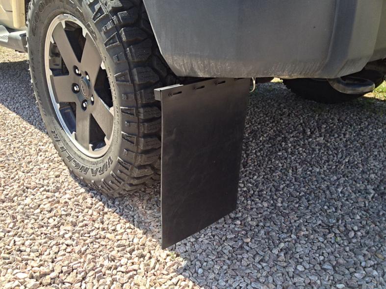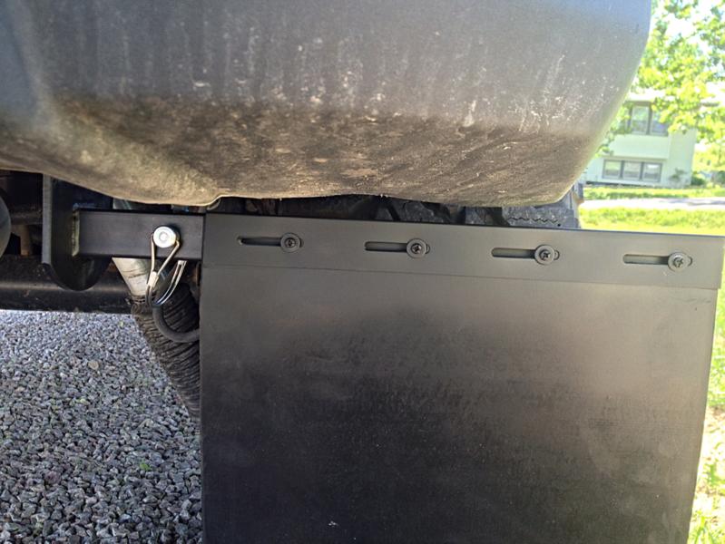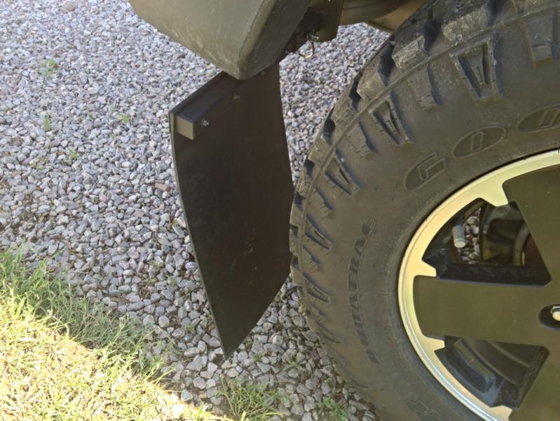 Added Aries removable mud flaps so I don't sling rocks on my popup when towing it. They don't fit on just like the instructions state of course. With a stock bumper they have to be dropped down and only use one bolt, but I can drill into the frame if need be but that one bolt seems to keep it really secure.