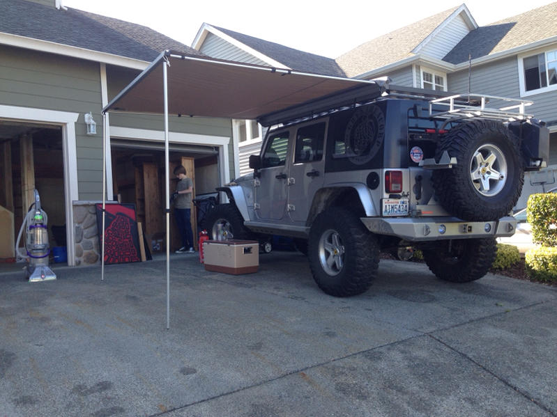 Finally got my awning brackets for my front runner rack and installed my awning.