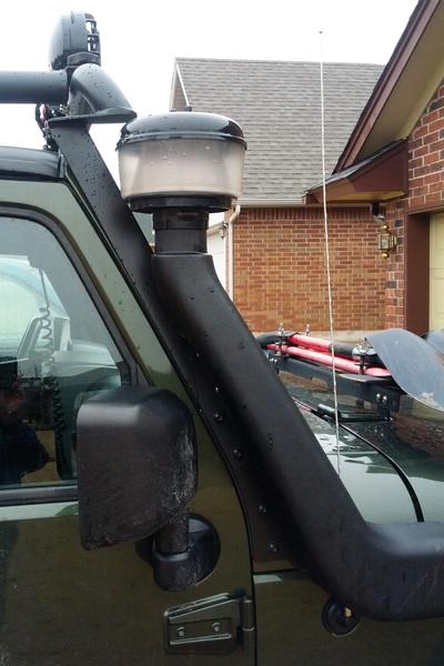 That's one of the reasons I went with the MBRP rack. If your snorkel is already mounted (I have the ARB Safari snorkel) one of the only racks that works is the MBRP. Great rack, though, so no regrets there.
