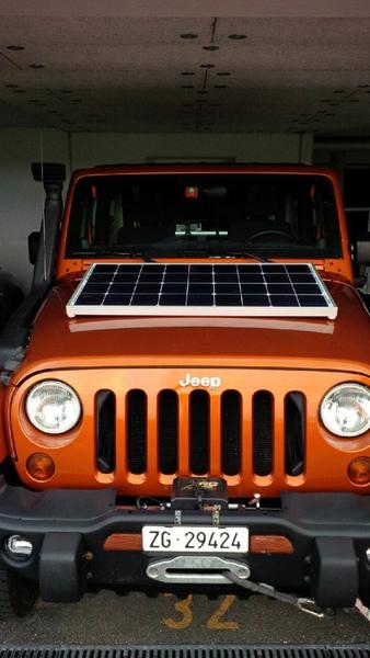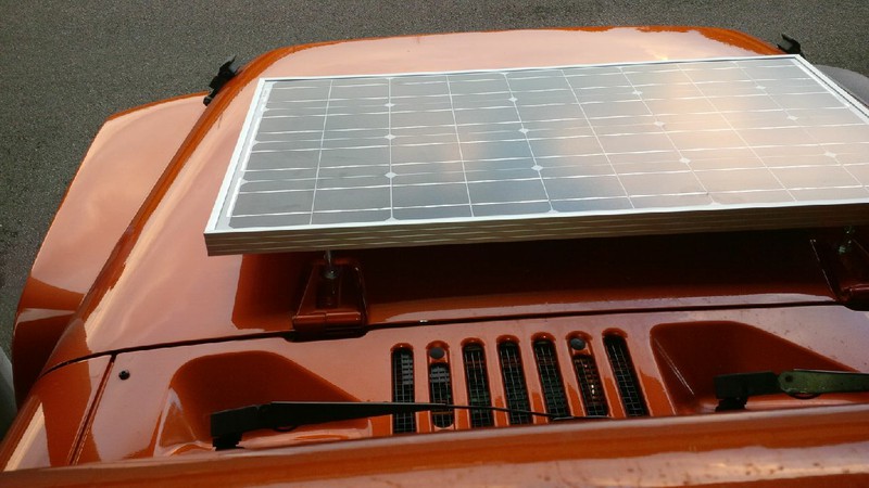 Told a friend my idea to mount my solar panel on the hood. He came up with further ideas and made the mounting brackets for me.