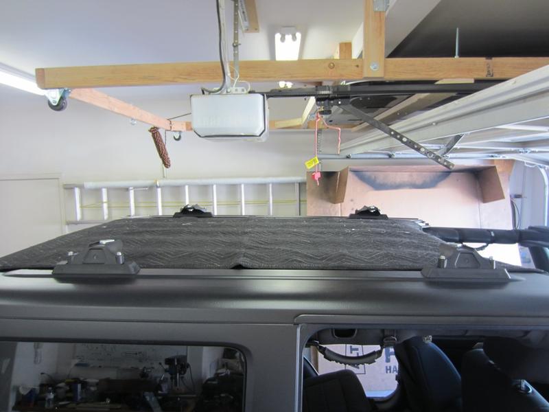 Here is a couple of pictures that shows measurements of how much height the rack adds to the roof of the JKU.