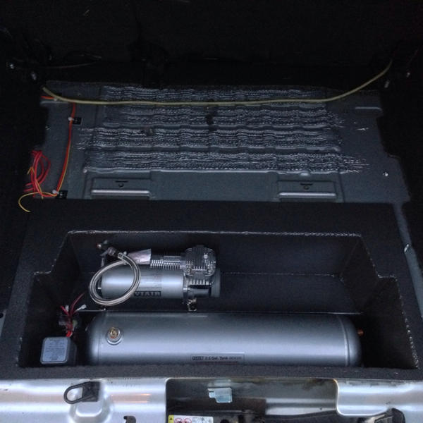 Grenadeacorn - I really like the way you tucked the compressor & tank under the flat lid. Very clean & functional. My son put a ViAir compressor in the cargo area of his 1998 Cherokee - runs the Ox lockers and airs up his tires - but it's more exposed, and potentially more easily damaged. I don't have a photo of his installation. Very sturdy mount, but kind of hanging out, in the way a bit, where the spare tire was originally. I like your clean setup much better - makes better use of space! I'm guessing the fan is to cool the compressor? Regards, CW