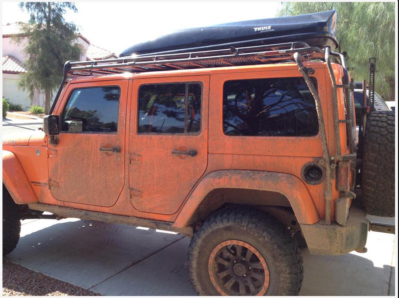 I tried to message Jeered, but got no reply. Does anyone know what Thule rig he has on top of his Gobi Stealth? I am taking a long camping trip with my girlfriend and her brother and we need all the space we can get in the Jeep. Also, Mark D, love the adventure rack you have in the back, but I looked it up and they seem a bit pricey. Anyone have any less expensive alternatives?