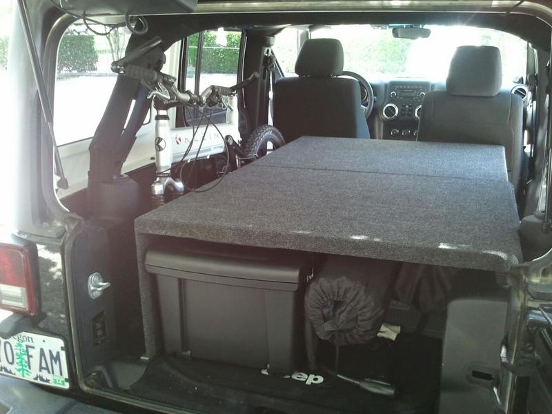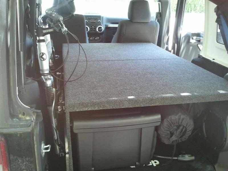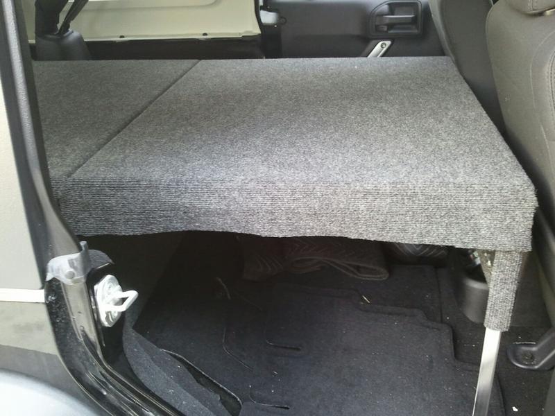 I built it in two sections. The rear will stay in place virtually all the time, although I bolted it down using the existing tie down bolts near the front of that box section and on the side. The front piece is bolted to the rear and can be removed easily when I want to reinstall the rear seat. I am on an extended road trip now and wanted the extra space.