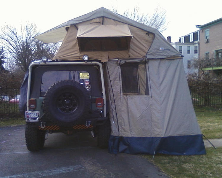 These are the only pictures I have of the awning but it's not extended. This is our family ride. Right now I am waiting to get home and drop the trailer on the frame and finish wiring it up. Excited to do a Moab and Vermont trip next month.