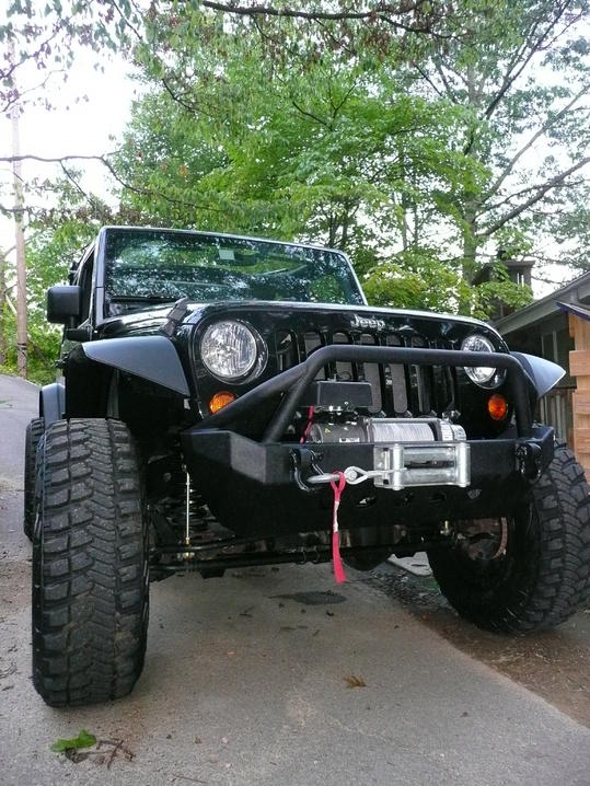 Well finally got the jeep done put on : 3.5 RK X-Factor kit, 5100 Bilsteins, 37x12.50r17 Goodyear MT/R's, Procomp 8069's, Smittybuilt XRC front and rear bumpers, Warn M8000 winch, added 5.38 Gears, EVO C gussets and sleeves. Cut the fenders and last but not least slapped in a Superchips Flashpaq whew ohh yeah and I peeled all the stickers. Tues we head to Windrock TN to get some real pics in action!!!