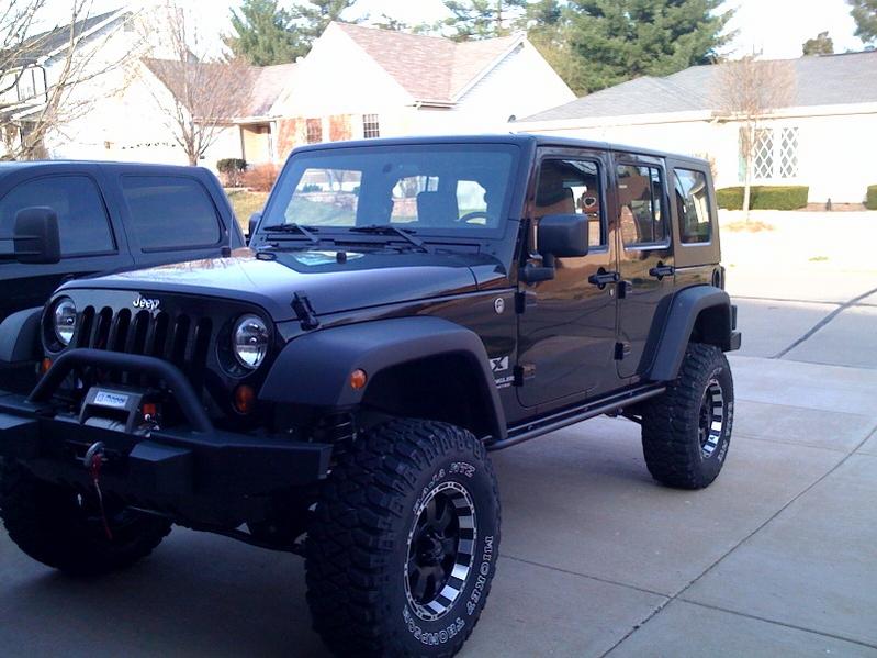 Well I have been following a lot of builds and finally got mine going and looking ok enough to post a pic. 08 x unlimited with 4" teraflex,35's and Mopar bumpers,rockrails,carrier & Warn xd9000i winch. Now I just need to figure out what gears and probably front air locker.