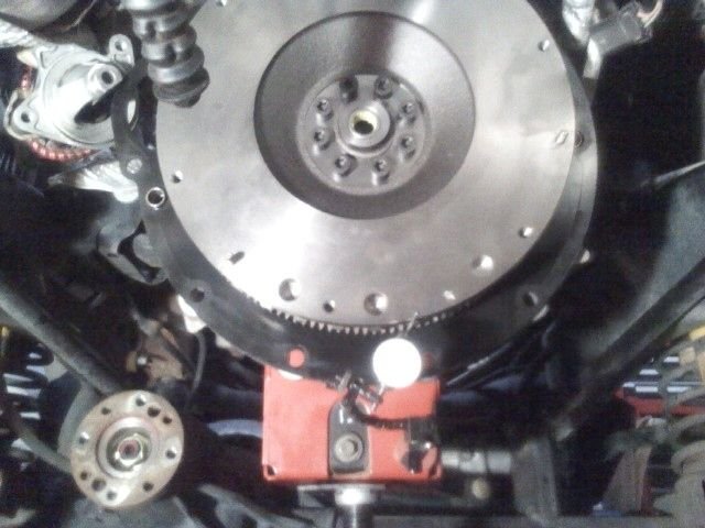 Remove the flywheel timing sensor from the bell housing (passenger side) so it doesn't get damaged. This sensor reads crankshaft position from the segmented ring on the flywheel, and the gap is small.